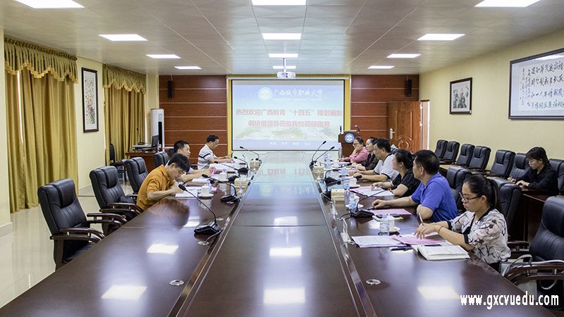7月30日上午,自治区教育厅规划处副处长覃伟合一行四人到我校就广西教育“十四五”规划编制专题开展调研,召开了座谈会,我校校长李中华、常务副校长邓肖丽、副校长罗梅、党委副书记周义文等领导出席会议 。