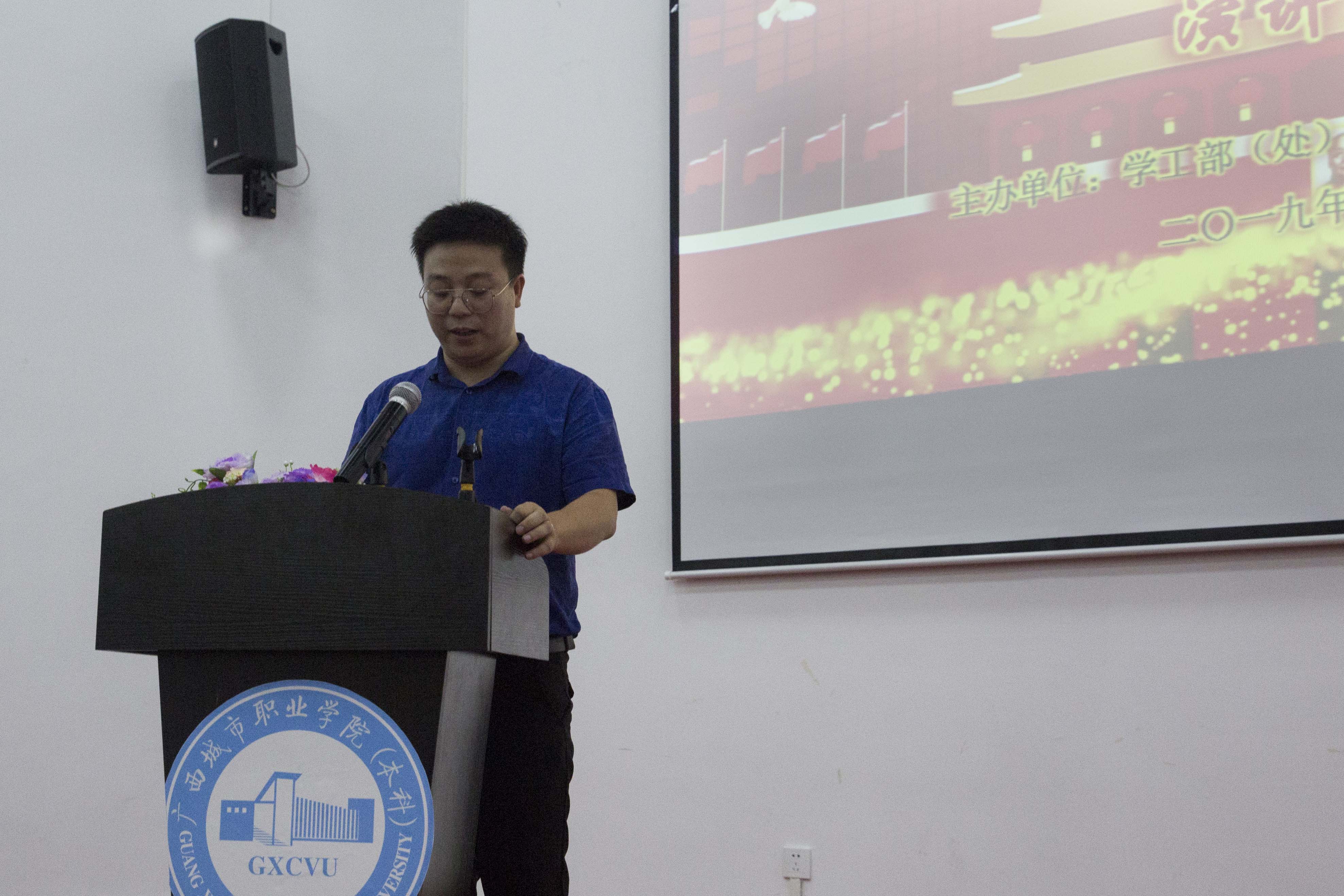 为大力宣传国家资助政策,增强学生感恩意识,5月14日晚,我校在崇左校区阶四教室举办“感恩祖国、助学筑梦、励志成长”的学生资助主题演讲比赛。出席本次比赛的领导有教育学院副院长羊双全、汽车工程学院副院长张紫荣、信息工程学院学工办主任张安刚等领导老师,以及各二级分院嘉宾。
