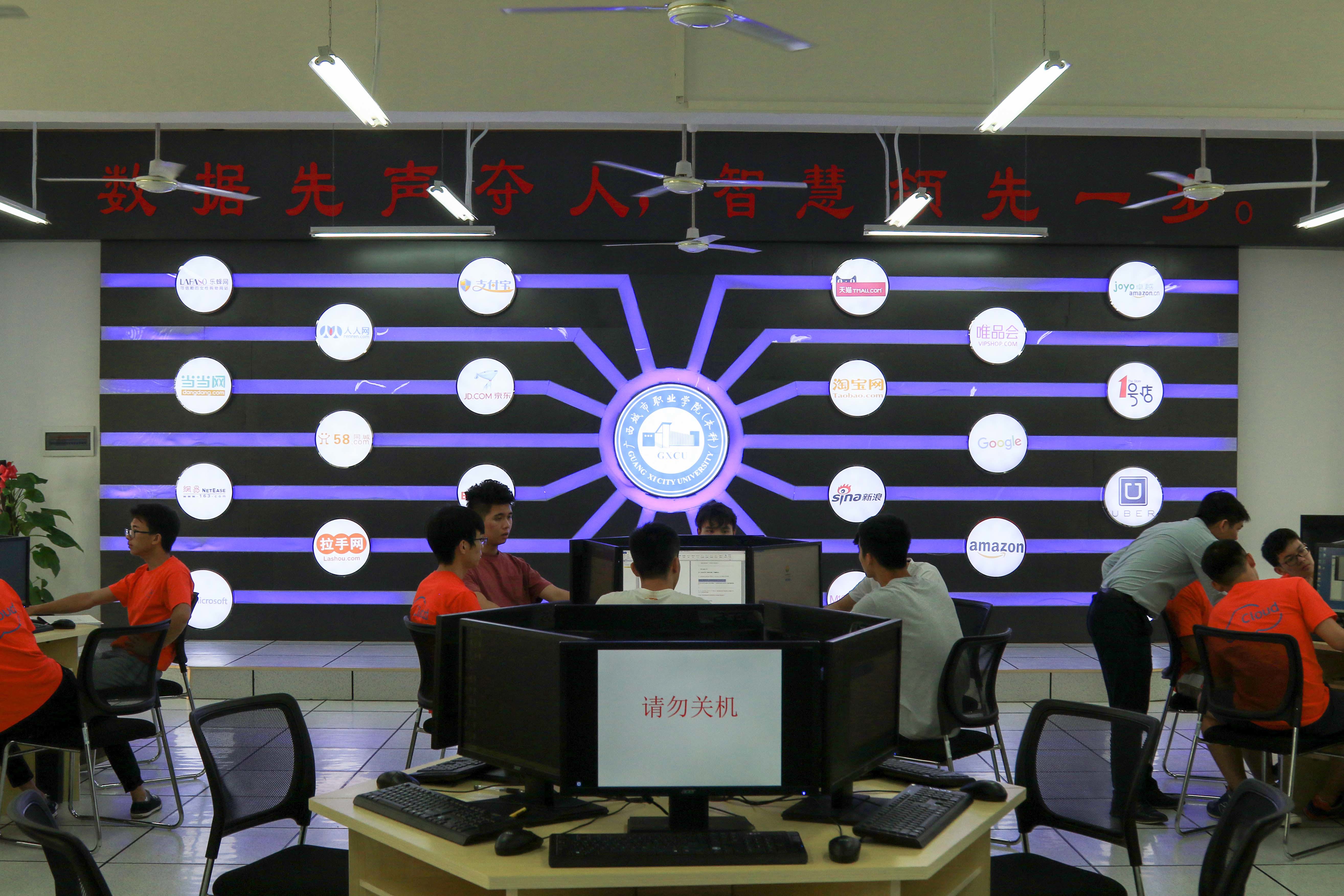 同学们在大数据实训室学习