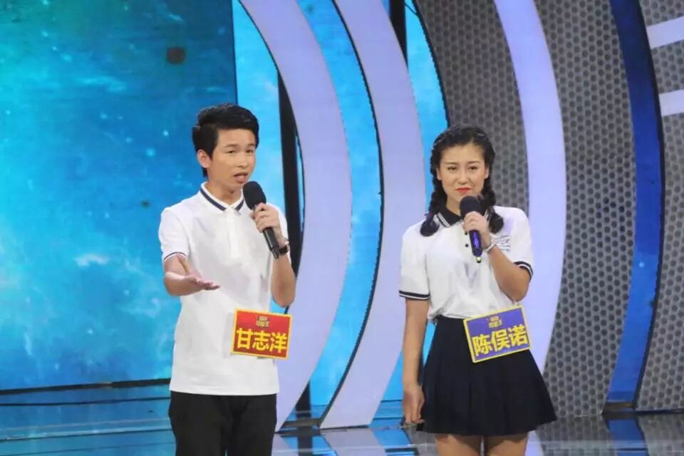 此次《挑战技能王》分为两轮挑战,第一轮挑战,主持人随机出题,挑战者在限定时间内完成;第二轮挑战,《我是主持人》比拼,挑战者要在规定的时间内完成一段模拟主持的表演。我校挑战者:陈俣诺、甘志洋两位同学在第一轮的挑战中,是用东北话和壮话朗诵《再别康桥》,他们默契的配合,标准的播音腔加上幽默搞笑的表情动作,带动了现场的气氛,观众们纷纷为他们鼓掌。