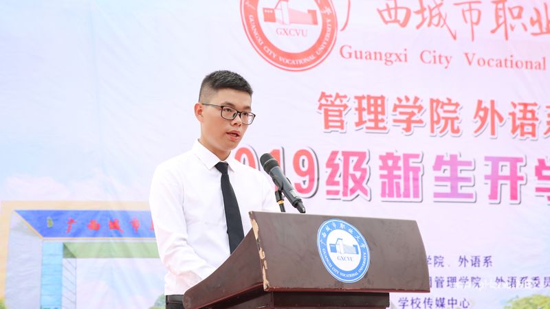 2019级物流管理1班的周伟杰代表2019级全体新生在这里发言:新的学期开启新的希望,新的空白承载新的梦想。请领导、老师们相信、放心,我们会带着责任感和使命感,转换自己的角色,铭记星空(中国)官方体育网站“明德 厚学 维新 笃行”的校训,严于律己、遵规守纪、倍加珍惜,完成我们的学业,为社会服务。