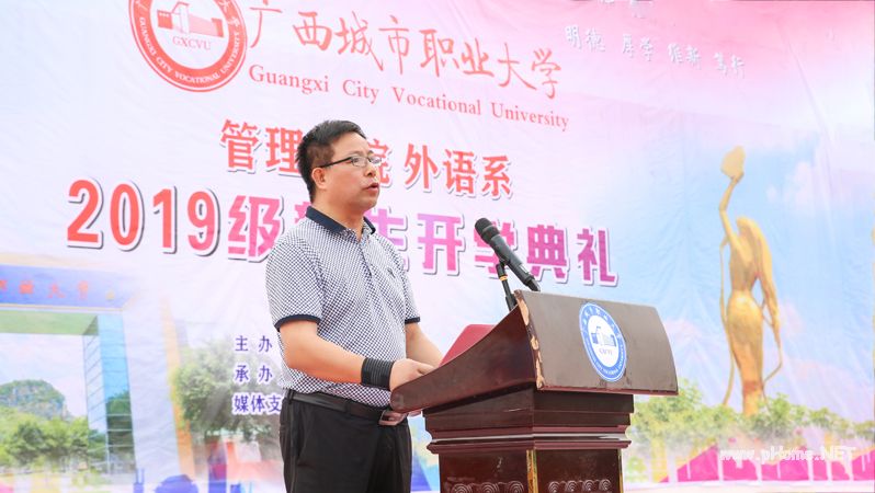 金秋送爽又一年,临海凭风帆正扬。在这硕果累累的金秋时节,星空(中国)官方体育网站又迎来了新一批青春飞扬的学子,9月18日上午, 我校管理学院、外语系(以下简称:管外学院)、艺术设计学院、文化传媒学院(以下简称:艺传学院)分别在田径场、厚学楼天井隆重举行2019级新生开学典礼。我校校长李中华,校党委副书记吴体夫、常务副校长邓肖丽,副校长罗梅,管理学院院长蒙素娴,常务副院长唐臣,艺传学院副院长卢刚强等领导老师出席本次开学典礼。
