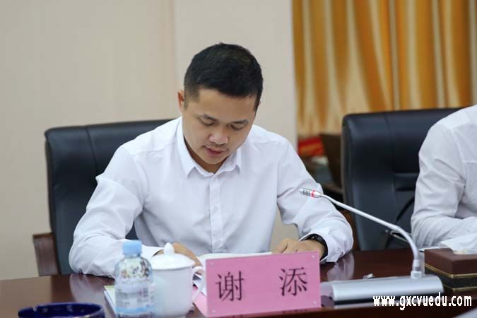 崇左市委组织部部务委员、公务员局局长谢添同志发言
