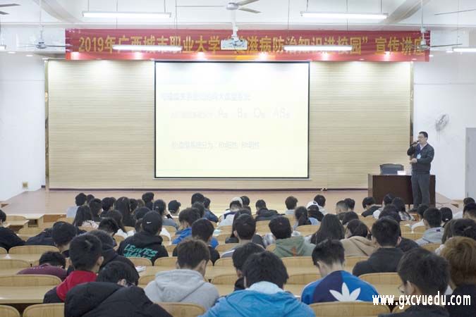 为进一步增强学生对艾滋病的防范意识,普及艾滋病基本防治知识,11月29日下午,我校邀请到崇左市中心血站副站长梁佐峰在空港校区厚学楼阶梯三教室进行防艾滋病与无偿献血宣传讲座。各学院学生代表聆听了本次讲座。