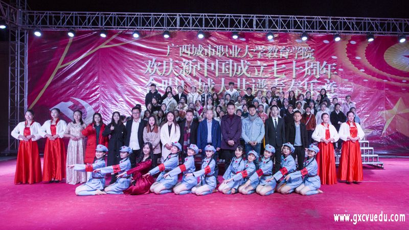 为庆祝新中国成立70周年,贯彻落实学校"三爱、三学、三争"教育活动理念,在这特殊意义的时刻,教育学院于12月6号、7号晚在崇左校区露天舞台欢聚一堂,以“欢庆新中国成立七十周年,合唱广登录入口共谱青春乐章”为主题举办一年一度的合唱比赛,用嘹亮的歌声欢庆伟大祖国,歌唱美丽登录入口,共谱青春乐章。