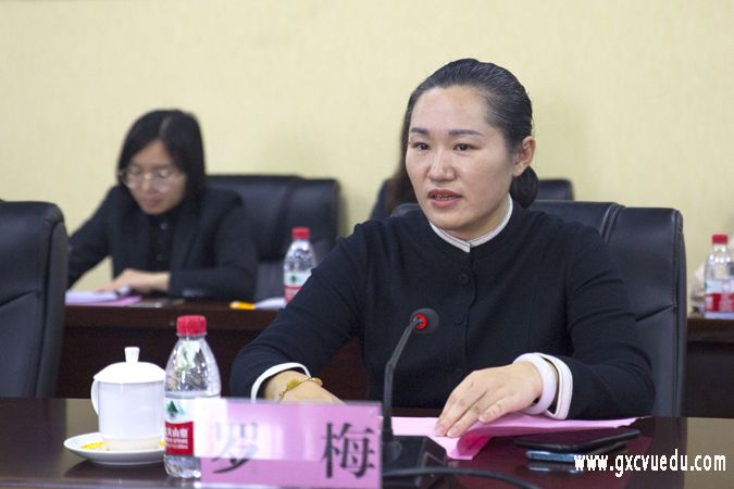 参观实训室后,东盟学院领导与我校领导、各相关专业负责人在行政楼206会议室进行座谈会。会议开始,由广西城市职业学院附属中等职业学校校长罗梅致辞,她表示:学校内涵建设的主要抓手是专业建设,建校至今,为适应地方经济社会发展需要,我们不断调整专业布局,使之更为优化,确保各专业在一个相对科学、合理的专业布局框架内成长、成熟,促使专业结构与产业结构的匹配与对接,推动学校转变办学定位,促使资源重组,最优利用,激发新的生长点。接着由崇左市八桂职业技术学校副校长陆美芳做工作汇报,她对学校概况、体系构建、工作初步成效、存在问题和下一步工作打算做出汇报。