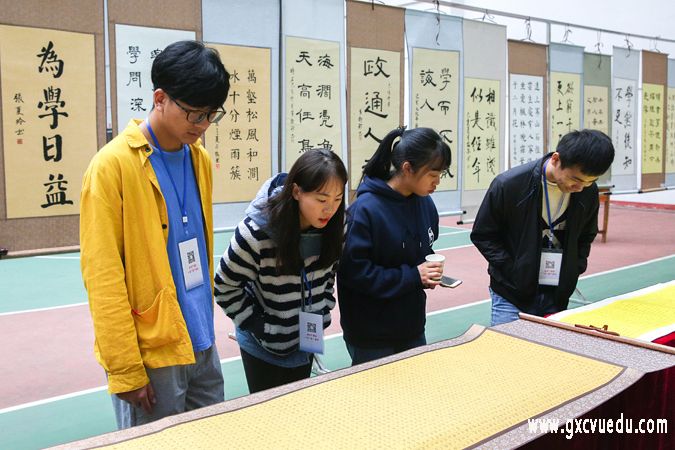 为了丰富大学生的校园文化生活,培养同学们对书法和绘画的兴趣,继承和发扬中华民族优秀的传统文化,提高大家对书画艺术的审美能力,12月21日上午我校艺馨书画协会在崇左校区体育馆开展书画展活动。书画展展出245幅书画作品,其中楷书110幅、隶书42幅、行书59幅;绘画作品展出33幅,其中写意画8幅、工笔画10幅、山水画15幅。书画展呈开放式展览,吸引了大批书画爱好者前来欣赏。