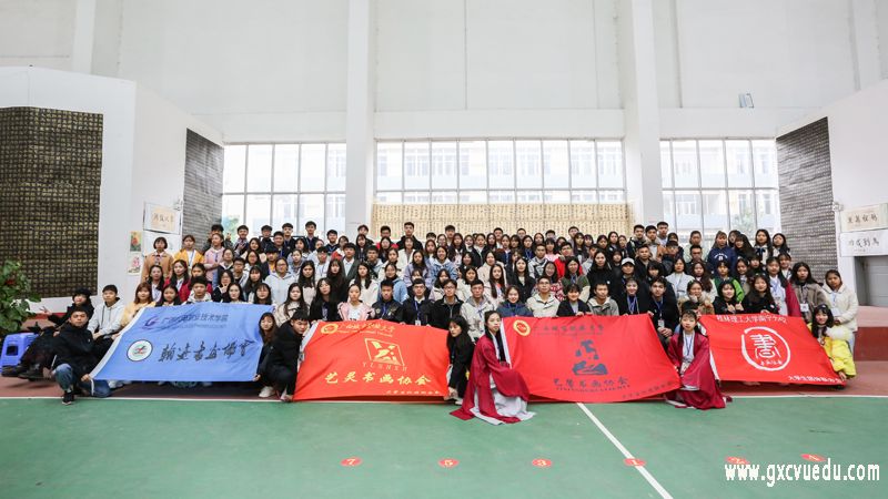 此次书画展还邀请到了广西民族师范学院书画协会、崇左市高等幼儿师范书画协会、桂林理工大学空港校区博艺书画协会、广西机电职业技术学院翰迹书画协会以及空港校区艺灵书画协会的同学一起交流学习。