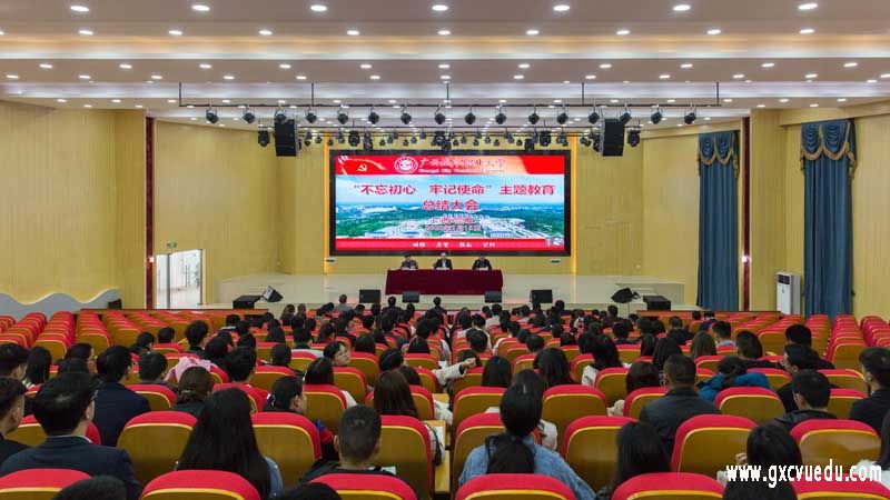 1月15日,我校“不忘初心、牢记使命”主题教育总结大会在崇左校区教育学院演奏厅召开。会议总结我校主题教育工作,对巩固拓展主题教育成果进行部署。崇左市“不忘初心、牢记使命”主题教育领导小组办公室第八巡回指导组组长许胜任到会指导。学校党委书记伍鹏志、校长李中华,党委副书记吴体夫、周义文,副校长罗梅等学校党政领导班子成员及学校全体教师党员参加会议。会议由学校校长李中华主持。 本次会议旨在贯彻落实习近平总书记在“不忘初心、牢记使命”主题教育总结大会上的重要讲话精神,总结学校主题教育开展情况和经验成果,为推进下一阶段党的建设等各项工作筑牢基础。