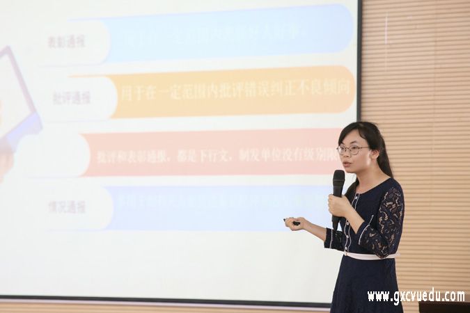 四位老师分别带来公文写作—通报、葡萄酒的品鉴方法、C语言程序设计、幼儿园环境创设四堂课程。四位老师授课方式各有千秋,其中,李宁宁老师通过近期的疫情通报案例来举例说明“通报”的适用范围以及写作方法,李老师还巧妙运用了信息化技术进行签到和课堂互动实操,激发学生的课堂参与度。徐小桃老师通过现场实际操作讲解了葡萄酒的品鉴方法,分别从观色、闻香、品味三个方面教学生品鉴葡萄酒。示范课结束后,广西本科职业教育研究中心余教授作最后点评。余教授认为四位老师的授课方式各有特点,授课方式运用巧妙得当,并与教师们探讨了“课堂教学改革的10大追问”“教师教学的九个新角色”等话题。