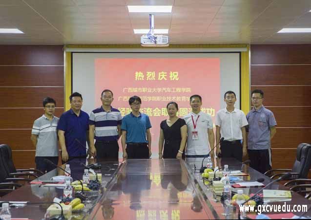 交流会上,罗梅副校长再次对广西科技师范学院到访的领导、老师表示欢迎,并向蒙焕念主任等到访人员详细介绍了汽车工程学院办学情况,双方共同观看我校宣传片及专业宣传片,并就我校的办学经验和实训基地建设进行深入交流。最后,两校参会人员合影留念。
