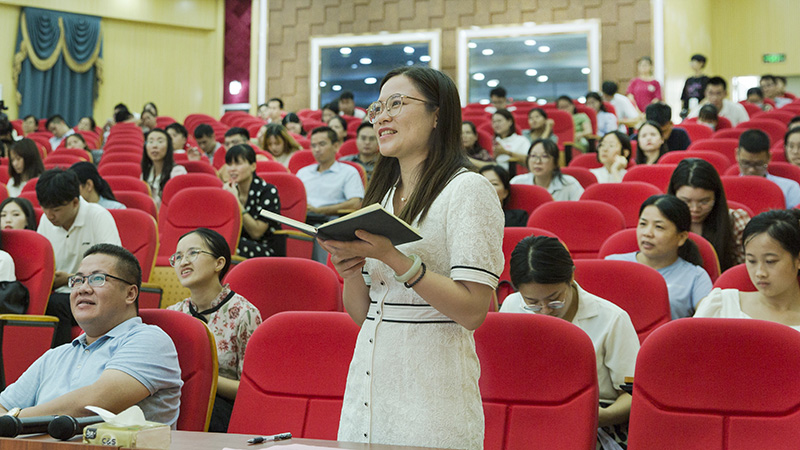 为更好帮助我校教师了解当前职业教育教学改革的前沿动态,提升教师队伍的课程与教材开发能力,7月28日,我校于崇左校区教育学院演奏大厅开展“工作过程系统化、活页式教材编写”专题讲座。本次专题讲座主讲人为姜大源教育名家工作室秘书长、北京全道智源教育科技院院长、天津大学研究生导师、管理科学与工程博士后、教育学博士闫智勇。参加本次专题讲座的有学校校长李中华、副校长黄妙红、商学院院长蒙振海等领导及教师代表。