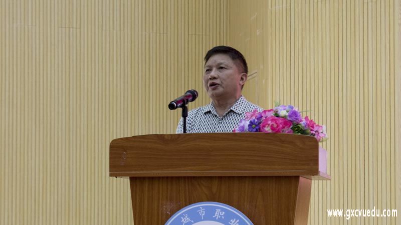 党委书记伍鹏志在崇左校区开学典礼致辞。伍书记表示,学校始终坚持以“学生为中心”的教育理念,以培养高层次技术技能人才为办学宗旨。用“五创”理念培养具有人文素养和科技精神的人才,倡导师生以敏感的思维去适应社会和产业热点。学校以立德树人为根本,职业人才“三爱、三学、三争”个人德行要求的提出,希望促进学生“技能+知识+修养”协调发展,同学们能够抓住这次来之不易的机会,胸怀大志,志存高远,脚踏实地,刻苦学习,学好本领,为中华民族伟大复兴贡献属于“登录入口人”的智慧和力量!