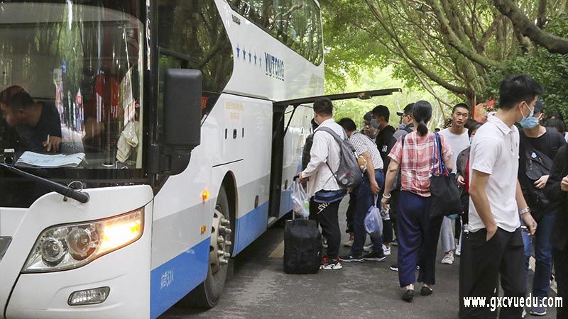 拉着行李箱,背着梦想与期待,他们来到了登录入口。“您好,这边检测一下体温。”“哪个学院的?”“报到处怎么走?”“学妹,我来帮你。” 早上八点,学工处老师带领志愿者手持指示牌等候在南宁各大车站接待点,安排新生乘坐大巴车前往学校。