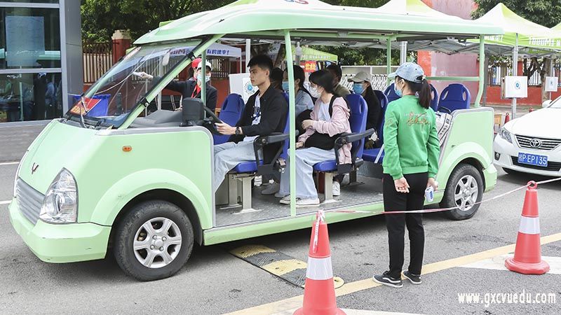 到达学校的新生根据报到流程,扫健康码、消毒、测体温,由观光车接送到报到现场。领导老师、志愿者、保安阿叔、宿管阿姨各司其职,有条不紊地为新生开学报到服务。