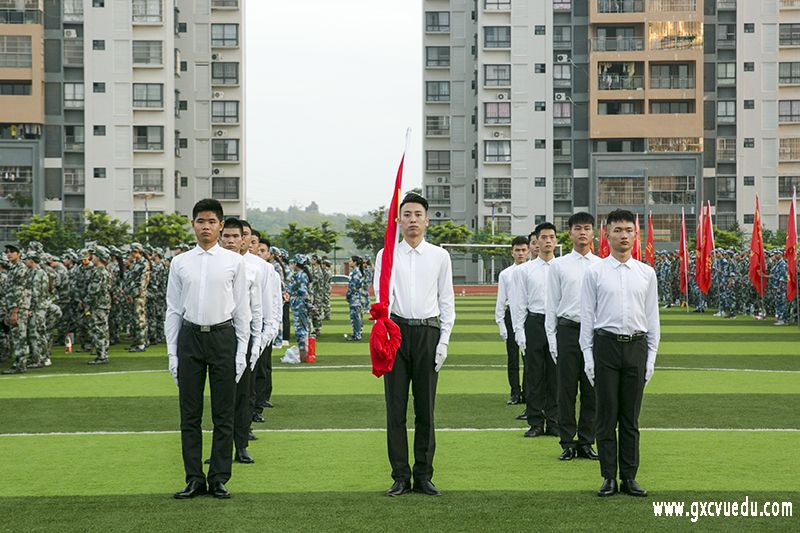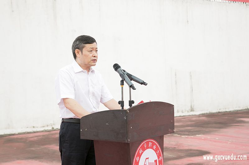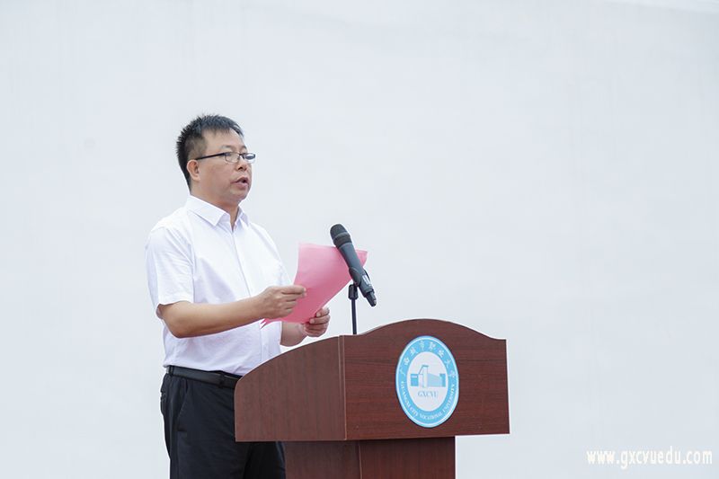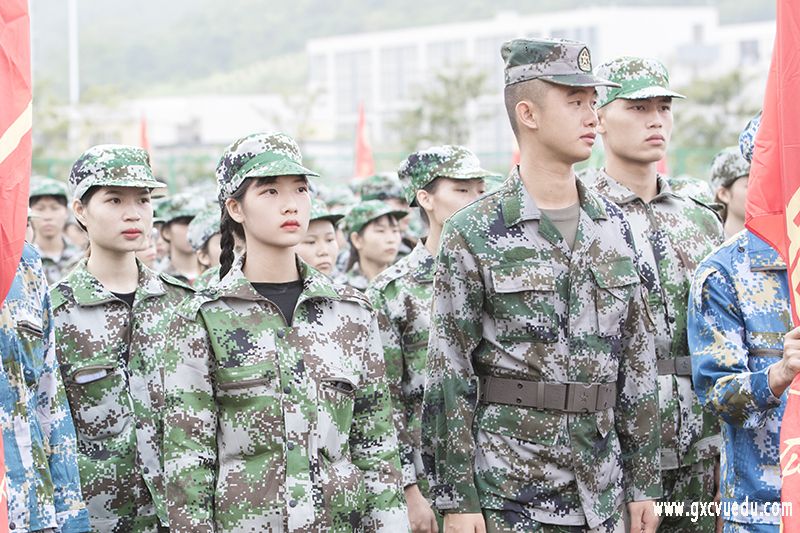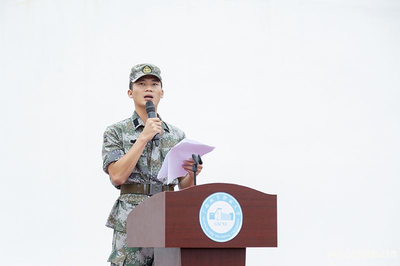 接着,崇左校区教官代表覃敏庆和空港校区教官代表吴启耀分别发言,他们希望同学们穿上军装的时候,就要把自己的人生追求和祖国的命运紧紧联系在一起,既然选择了军训,我们就应该勇敢地锤炼自己,不畏艰难、磨砺坚强的意志。军训期间,同学们要把自己当作一名军人,严格要求自己,发扬不怕苦、不怕累的精神,克服困难,圆满完成军训任务;要学会关心集体,关爱他人,建立深厚的战友情、同学情,增强班级荣誉感;军训期间同学们要做到令行禁止,严格服从教官、老师以及学校的安排,增强集体主义精神和组织纪律观念。