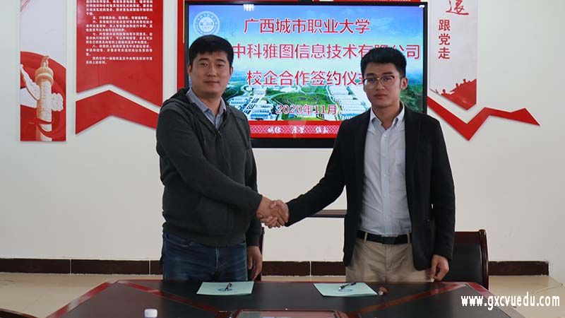 11月11日下午,建筑工程学院与广州中科雅图信息技术有限公司(以下简称中科雅图有限公司)在笃行楼3305会议室举行校企合作签约仪式。建筑工程学院院长蒙圣荣、执行副院长许俊桦、副院长覃智泽,中科雅图有限公司人事经理陈凯、田蕾等领导参加本次校企合作签约仪式。仪式由覃智泽副院长主持。