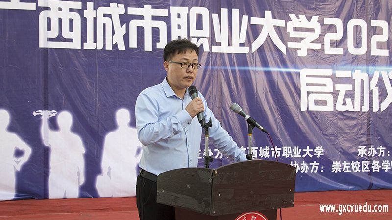 余金永院长为崇左校区开幕式致辞。他希望在本次活动中同学们能拿出智慧、勇气和激情,努力培养和提高自身的科学文化素养,自觉地汲取营养、丰富自我、发展自我、提升自我,做一名优秀的职教生。