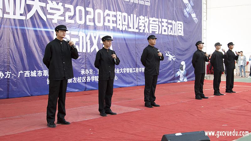 11月11日晚、11月12日上午我校分别在空港校区万物生涧源广场和崇左校区体育馆隆重举办“职业教育活动周”开幕式活动。出席空港校区开幕式的领导有学校教务处处长徐媛,管理学院院长唐臣,学工部(处)副处长梁杭杭等,出席崇左校区开幕式的领导有智能工程学院院长余金永,商学院院长蒙振海,汽车工程学院党总支书记诸葛桥忠,学工部(处)副处长柳英成等。此外各学院老师和同学都参加了此次开幕式。