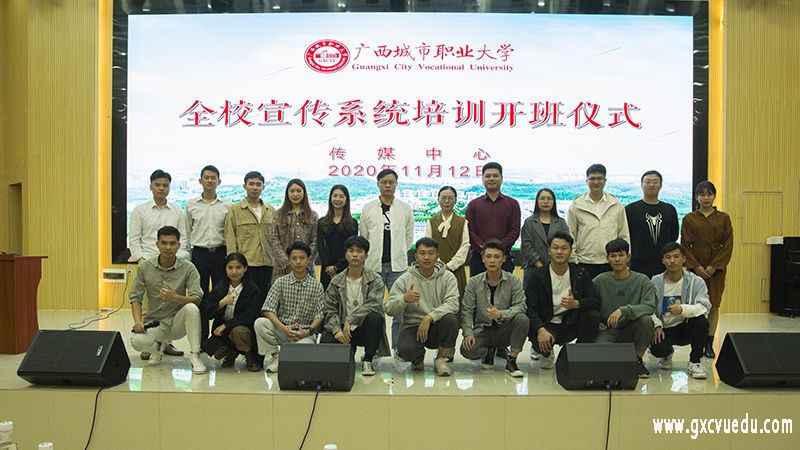 11月10日、12日,我校分别在空港校区厚学楼阶梯三教室和崇左校区演奏大厅举行2020年全校宣传系统培训开班仪式。学工部(处)副处长梁杭杭,传媒中心副主任赵春桃、覃卫杰、李宁宁等领导老师出席开班仪式,传媒中心、各分院宣传科师生参加培训。