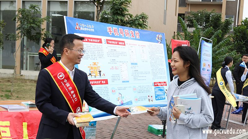 宣传活动现场,中国人民银行、桂林银行、中国农业银行等银行就“防范网络电信诈骗”为主题,通过发放预防网络电信诈骗宣传手册及讲解如何预防诈骗方法等形式,向同学们宣传预防诈骗知识。银行工作人员选取了网络刷单、校园贷等一些在教育领域及高校学生身边多发的电信诈骗案例,以案释法,通过对案例的分析讲解,深刻剖析了电信诈骗分子的行骗手段以及给受害人带来的巨大伤害,以此提醒和教育广大学生要提高安全防范意识,增强防范能力,避免上当受骗。