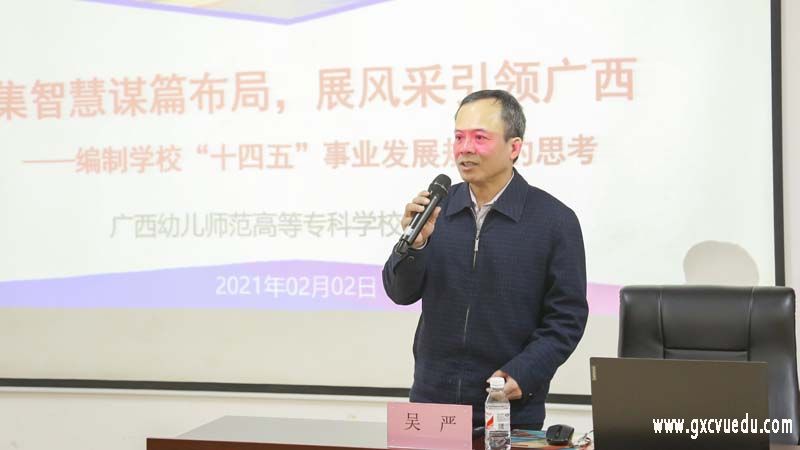 为规划好本科职业大学发展蓝图,做好学校“十四五”事业发展规划编制工作,2月2日,我校在空港校区四号教学楼阶梯七教室开展主题为“集智慧谋篇布局,展风采引领广西——编制学校“十四五”事业发展规划的思考”培训讲座。广西幼儿师范高等专科学校质量管理办公室主任吴严教授担任主讲人,学校质量管理办公室主任陆美芳副教授主持。