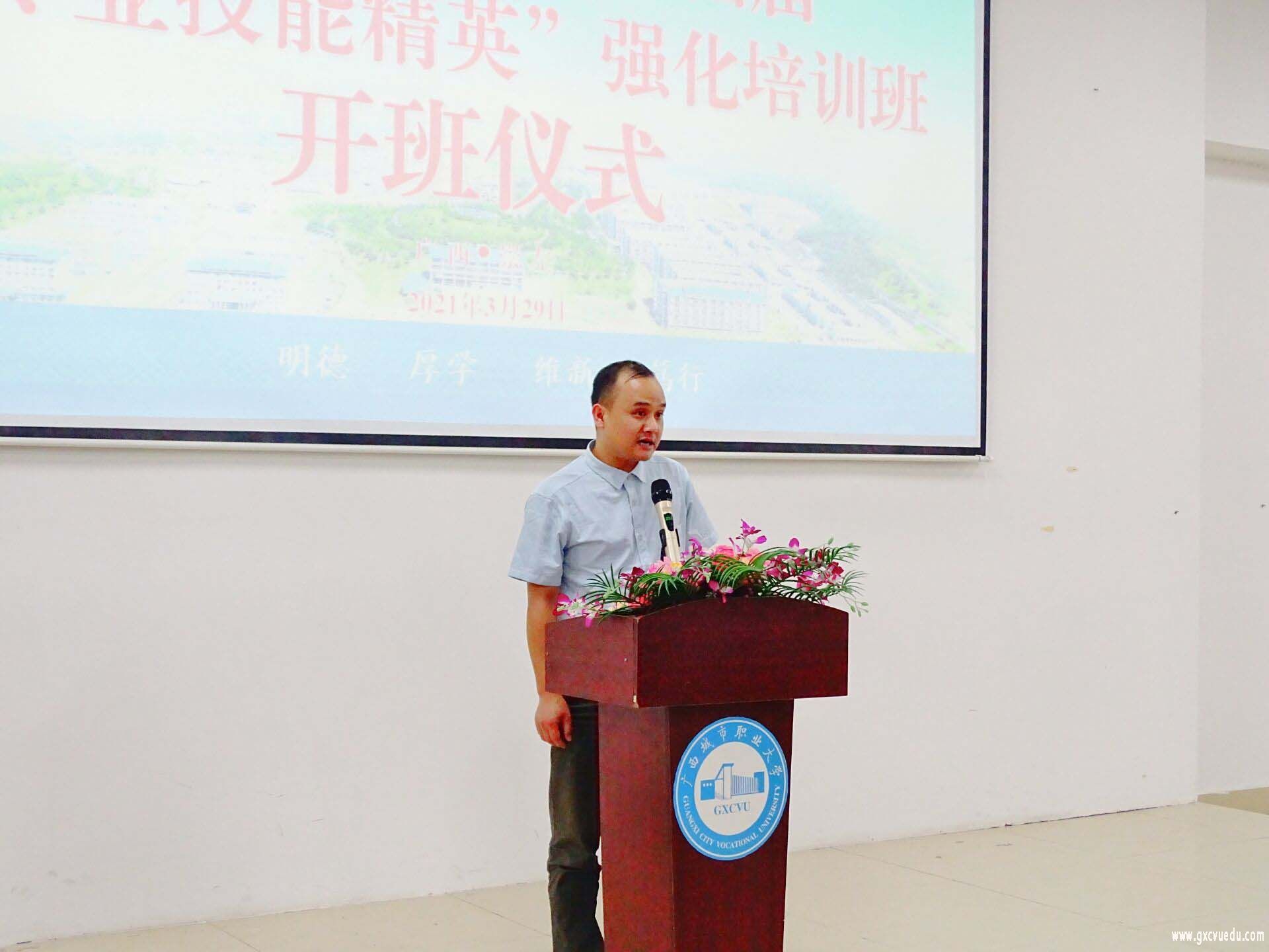 接着,培训班学生代表杨锡唱同学发言,希望通过培训班这个平台,提高自我素质,掌握技能,学用结合,争做一名大国工匠,以优异的成绩完成这次培训。