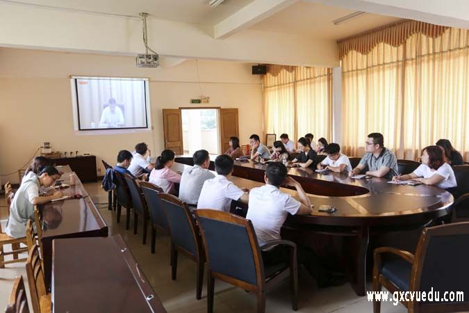 4月22日下午,自治区教育厅在南宁召开首届全区教材工作视频会议。教育厅副厅长李清先出席会议并作讲话,教育厅副厅长李勇齐主持会议。我校在空港校区旧行政楼三楼设分会场,教务处、各学院负责人、相关职能部门负责人参加会议。