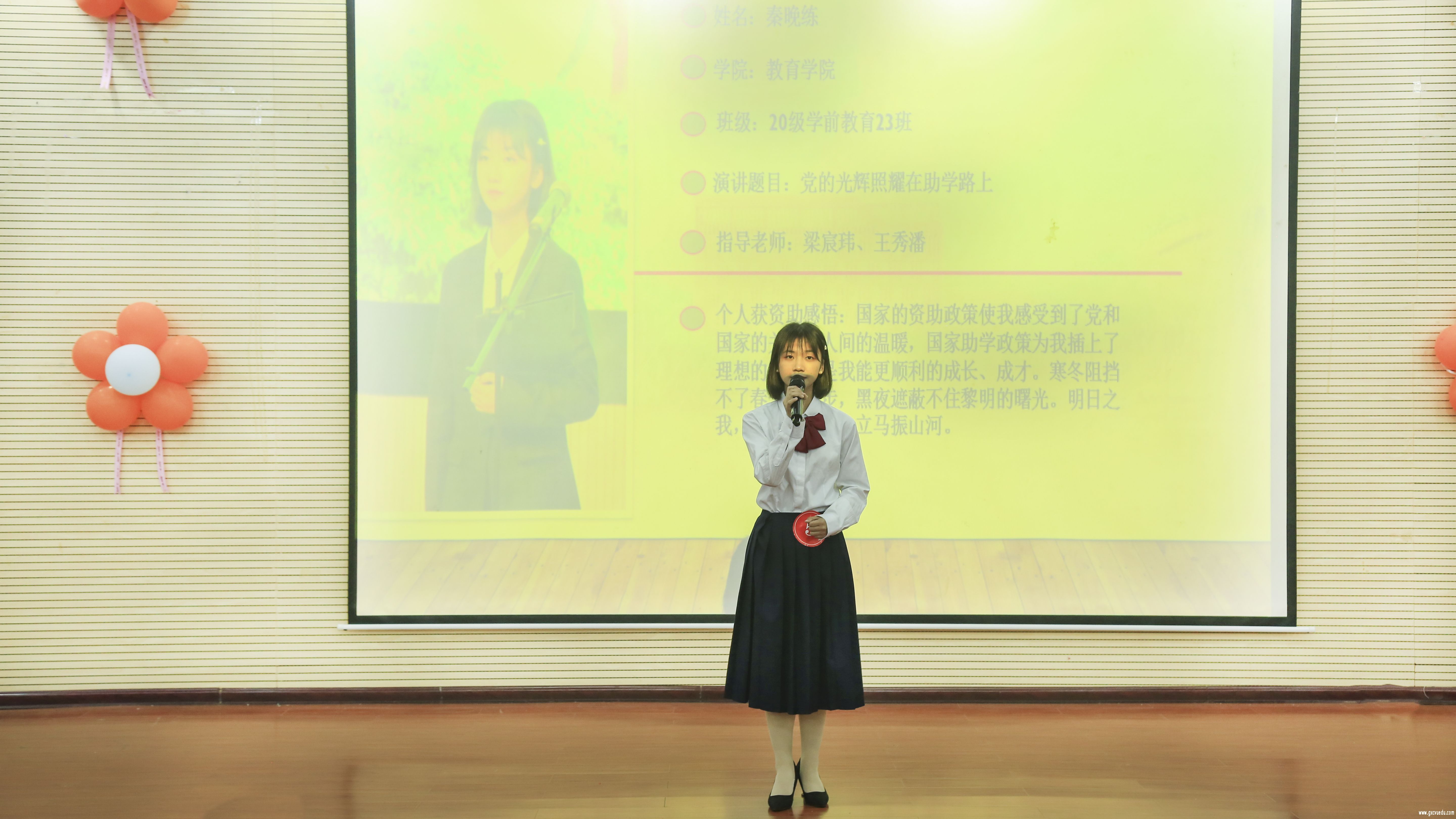 比赛场上,他们围绕“感党恩跟党走,助学筑梦成才”主题,用生动的语言、鲜活的事例,慷慨激昂地表达对党的感激。