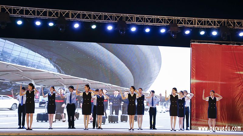 空港校区各学院分别带来专业技能展示、音乐舞蹈表演等节目。健康学院带来专业技能展示《推拿手法》,表演者身穿医学工作服,通过按、压、捏等手法,展示中医推拿手法的魅力。管理学院的学生带来《空乘秀》展示,她们穿着专业的实训服,展示空乘人员所具备的礼仪、礼节,体现出同学们过硬的专业技能。