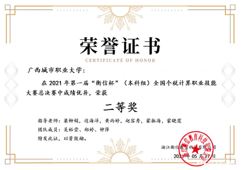 近日,2021年第一届“衡信杯”(本科组、高职组)个税计算职业技能大赛总决赛在线上举行。