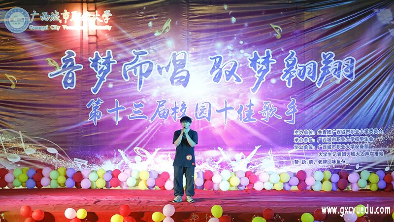 6月7日、8日晚,我校分别在空港校区灯光球场、崇左校区演奏大厅举办第十三届以“音梦而唱,驭梦翱翔”为主题的十佳歌手总决赛。本次比赛,经过初赛、复赛、决赛层层选拔,最终有30名参赛选手成功晋级总决赛。比赛由团委副书记杨成旺、学工部(处)副处长陆润发、国际学院副院长陈海利等十四位老师担任评委,各学院师生代表观看比赛。