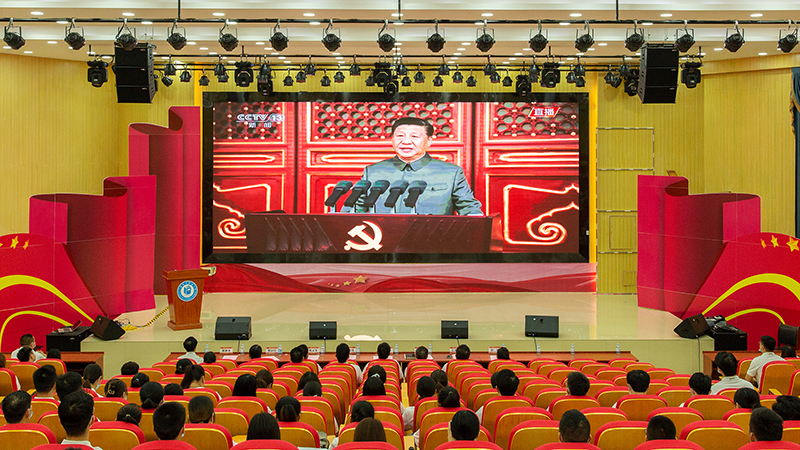大会伊始,全体党员教师观看中国共产党建党100周年庆祝大会现场直播盛况。“请党放心,强国有我。”这句响彻全国人民心扉的话语,重重地烙在党员教师的心上,督促教师以更好的风貌、更饱满的状态去帮助青年完成对党的庄严承诺,为实现下一个百年奋斗目标蓄力待发。
