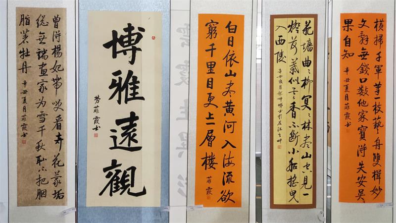 本次书画展共有206幅作品,其中,包含有棱角分明的楷书、中正平和的隶书、别具一格的行书、淋漓尽致的写意画、绘制精致的工笔画等多种书画作品。精美的书画展吸引了众多师生前往展区观赏。