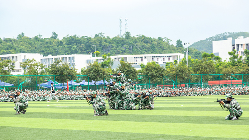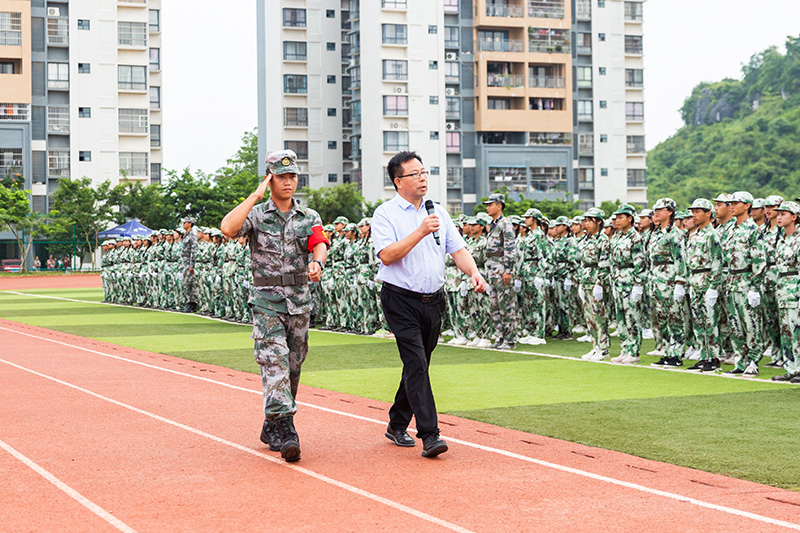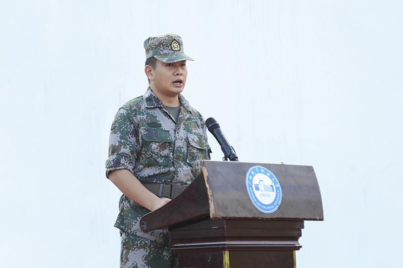 接下来是由广西绿盾国防教育基地主任陆俊余和空港校区军训总教官卢培刚分别作总结。他们表示,军训是一个成长的阶梯,也是一个崭新的课堂,通过军训,同学们进一步强化了国防意识,在一定程度上增强了体质,磨练了意志,培养了团结协作精神,形成了良好的纪律观念。希望同学们继续发扬“不怕苦、不怕累”的两不怕精神,在今后的学习、生活、工作中,再接再厉,再续辉煌。