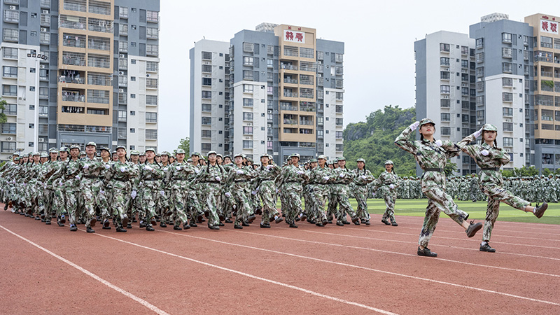 烈火骄阳,晒不尽城职大学子精神飞扬;骤雨狂风,摇不动中华儿女笔挺脊。历经风雨,为期14天的军训生活到今天截止,2021级新生将接受检阅,展示刻苦军训的成果。9月13日上午,我校在崇左校区、空港校区田径运动场举行2021级军训阅兵仪式暨总结表彰大会,出席本次大会的有党委书记伍鹏志、校长李中华以及各学院、各部门领导老师及2021级全体新生。
