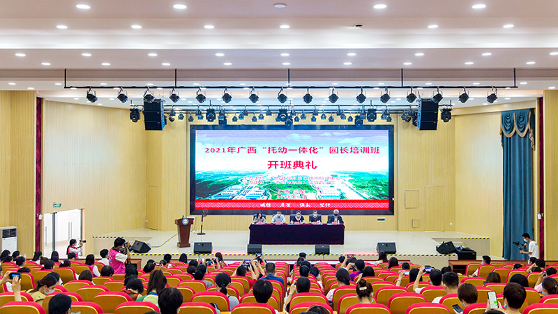国家的希望在孩子,孩子的希望在教育!为推动我区3岁以下婴幼儿照护服务事业健康有序发展, 9月25日上午,在自治区教师培训中心的大力支持下,由我校承办的2021年广西“托幼一体化”第一期培训班开班仪式在我校教育学院演奏成功举办。