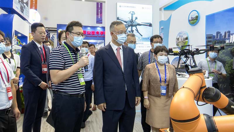 李中华校长、孙振保院长向前来观展的嘉宾介绍我校无人机设备