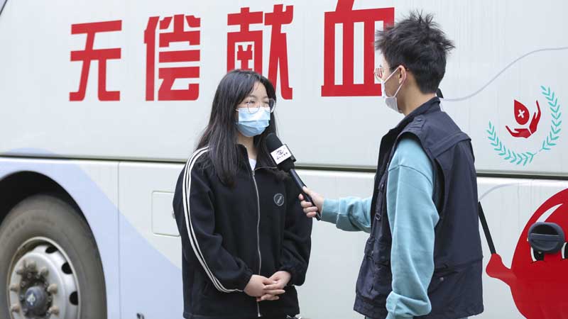 活动现场,记者采访了前来参与活动的同学。建筑工程学院工程管理专业4班彭初勇同学说:“献血是一件非常光荣的事,因为可以帮助到有需要的人,我第一次献血非常激动和开心,这是我第一次献血,但是不会是最后一次。”此外还采访了大学生同心园的志愿者、健康学院康复治疗1班的陈海燕同学,她说:“无偿献血可以帮助别人,锻炼自己,是一件非常有意义的事情,虽然我们不会操作那些采血仪器,但是我们可以以志愿者的身份来减轻医护人员的负担。”