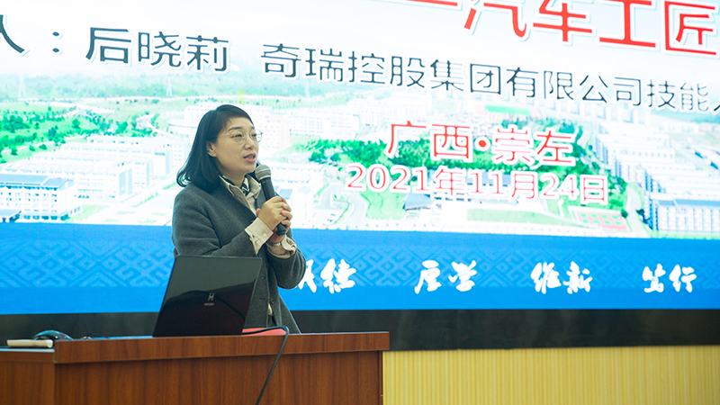 “校企融合,可以更好促进行业发展,让我们的学生引得进来,送得出去。要完成这一目标,教育发展不能全靠书本,要与外界文化碰撞,形成校企一体化的办学模式。”这是诸葛院长在学生交流会上的句句箴言。职业教育要为国家培养青年一代走技能成才、技能报国之路,为全面建设社会主义现代化国家提供有力人才保障。后晓丽总监、杜文凯主管在随后的讲解中就让同学们直观的了解到企业所需人才,奇瑞公司从汽车制造业起步,立志为产业报国而奋斗,围绕汽车价值链,布局多元化产业,从零到50000+员工,一直在不停的创新发展,不停的追梦,而追梦人的培养正是奇瑞公司与汽车工程学院校企合作的目的所在。将大学的研究性与企业的应用性相结合,既重视专业知识的学习,也训练了相关的技术技能,使学生的综合能力得到培养。