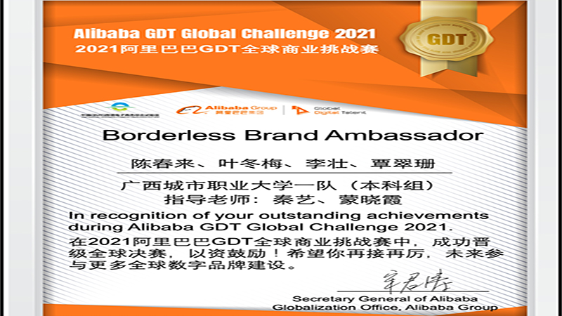 商学院代表队在2021阿里巴巴GDT全球商业挑战赛(中国赛区)斩获一等奖