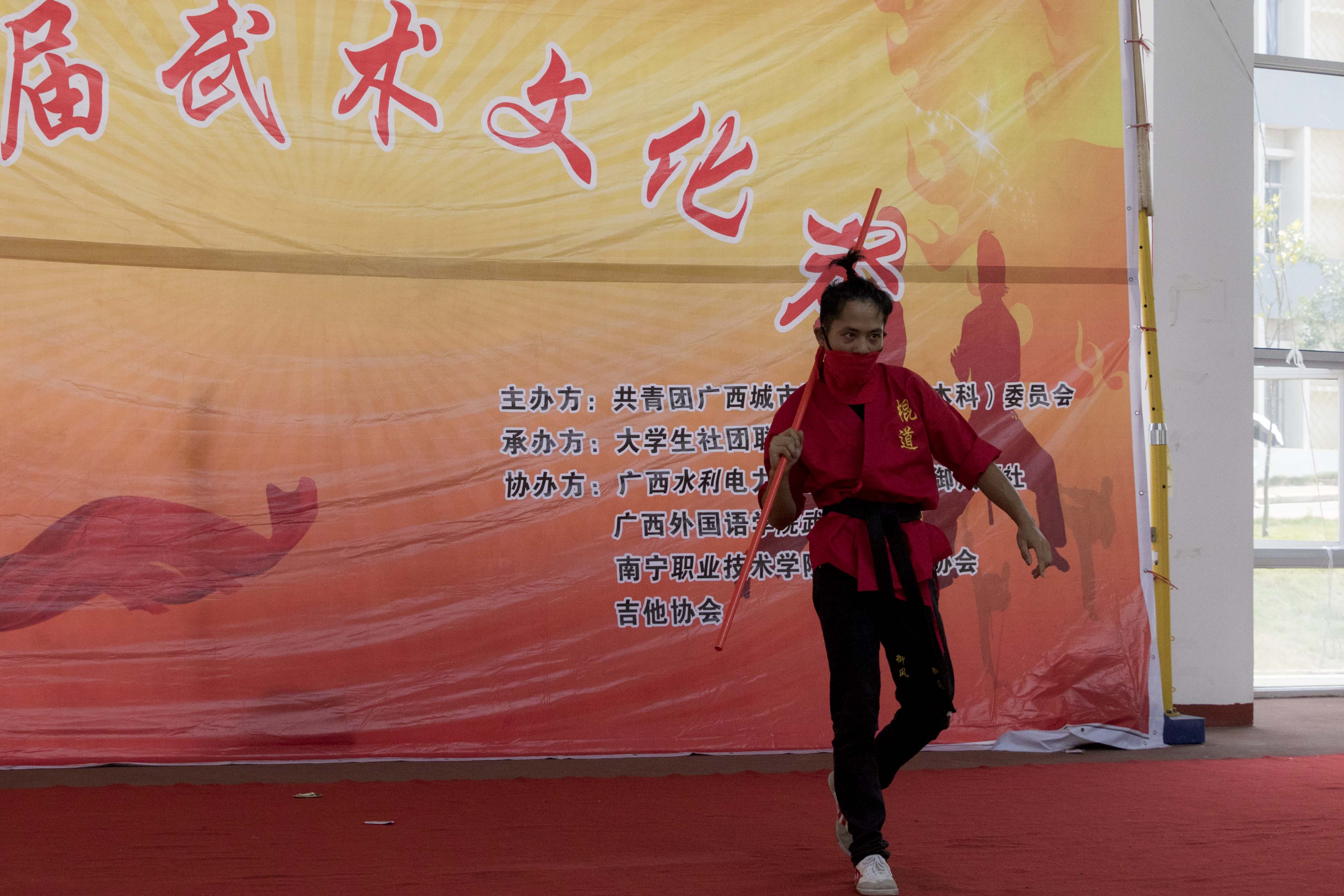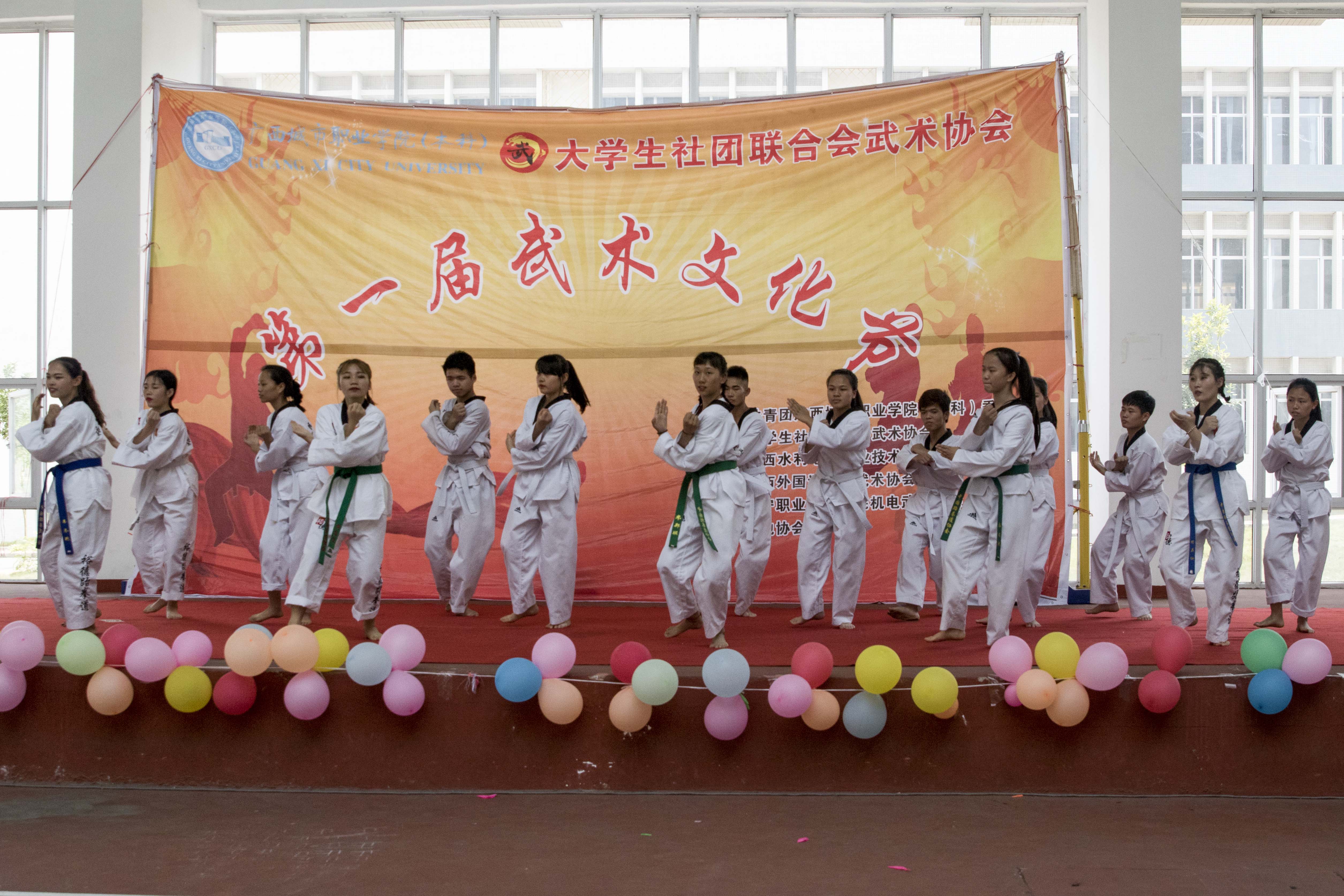 为了活跃大学生的业余生活,锻炼同学们的意志,5月25日,我校武术协会在崇左校区体育馆举行首届武术文化节。出席本次活动的领导有校团委办公室主任杨成旺、副主任涂凌武,汽车工程学院学工办副主任梁维泽等领导老师及其他社团组织代表。此外还邀请到我校空港校区的武术协会、广西水利电力学院御风棍社、广西外国语学院武术协会、南宁职业技术学院机电武术协会、广西民族师范学院飞杨跆拳道协会的同学,各大高校武术高手共聚一堂。