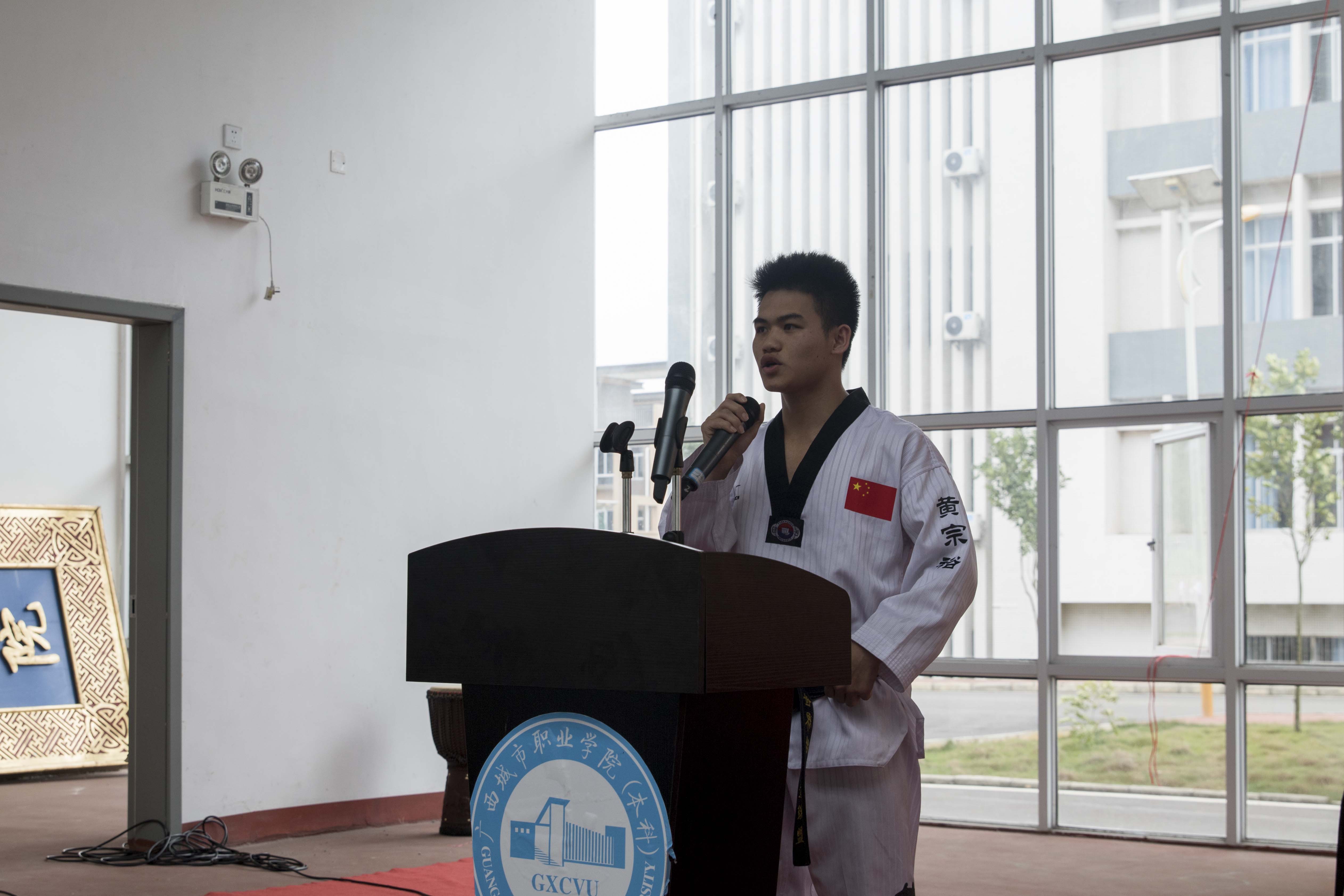 接着,武术协会17级现任会长黄宗裕发言,武术文化节的开展,增加了成员对协会的信任,增强同学们的团结协作能力,更是为了以后活动的开展打下基础。