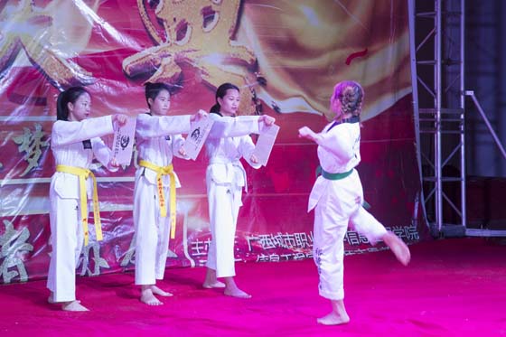 此次晚会共有10个精彩节目。信息工程学院学生会文艺部和青协文艺部同学带来的舞蹈表演《出山》,表演过程中腰背挺直,双膝微曲,双手自由伸直柔软的上下活动,精彩表演赢得了在场观众的热烈掌声。武术是中华民族悠久的历史文化瑰宝,武术协会同学带来的武术表演《劈大理石品势》,出拳踢腿熟练的动作,把现场氛围引入高潮。此外晚会还穿插了抢答互动环节,现场观众争先恐后的进行问题抢答,场面气氛极度活跃。
