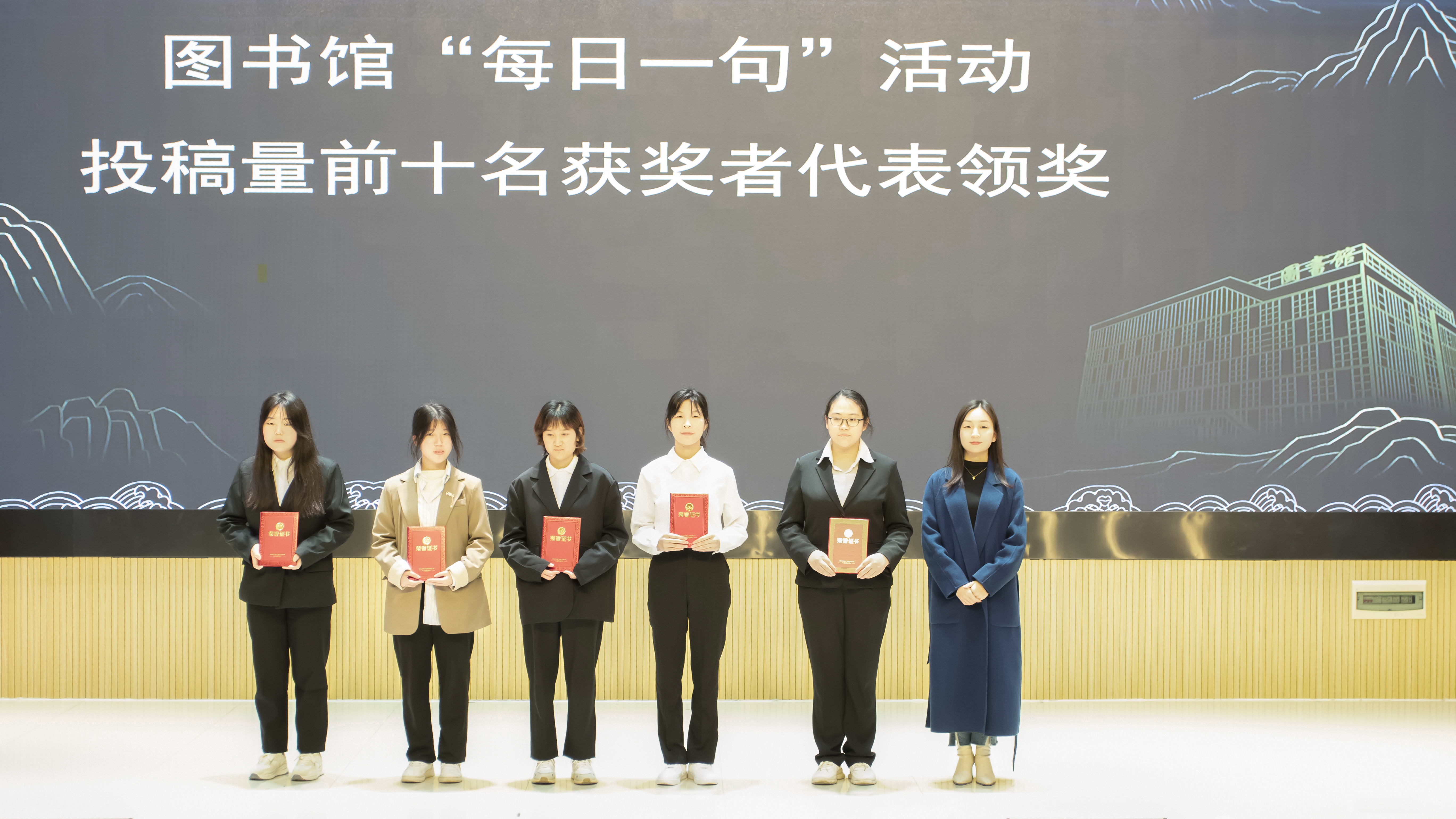 韦秋玉老师为“每日一句”获奖者颁奖