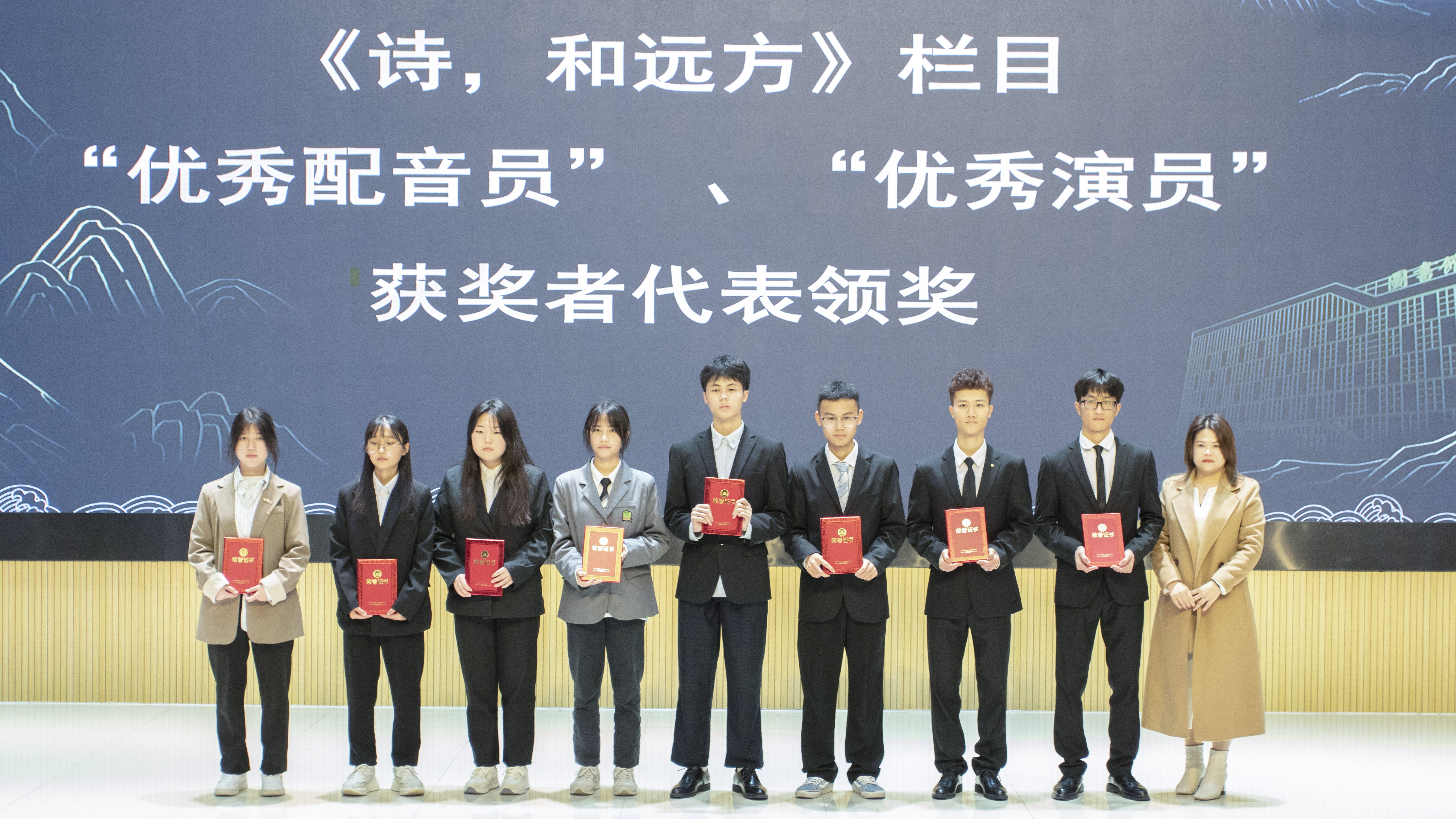 黄艳华老师为《诗与远方》栏目“优秀配音员”和“优秀演员”获奖代表颁奖