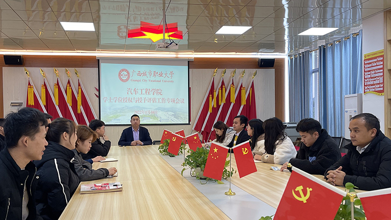 为进一步做好我院学士学位授权与授予评估准备工作,确保评估工作的顺利开展,1月10日下午,汽车工程学院在4410会议室召开学士学位授权与授予评估工作推进会。会议由汽车工程学院院长诸葛桥忠主持,各专业负责人和全体教师参加此次会议。