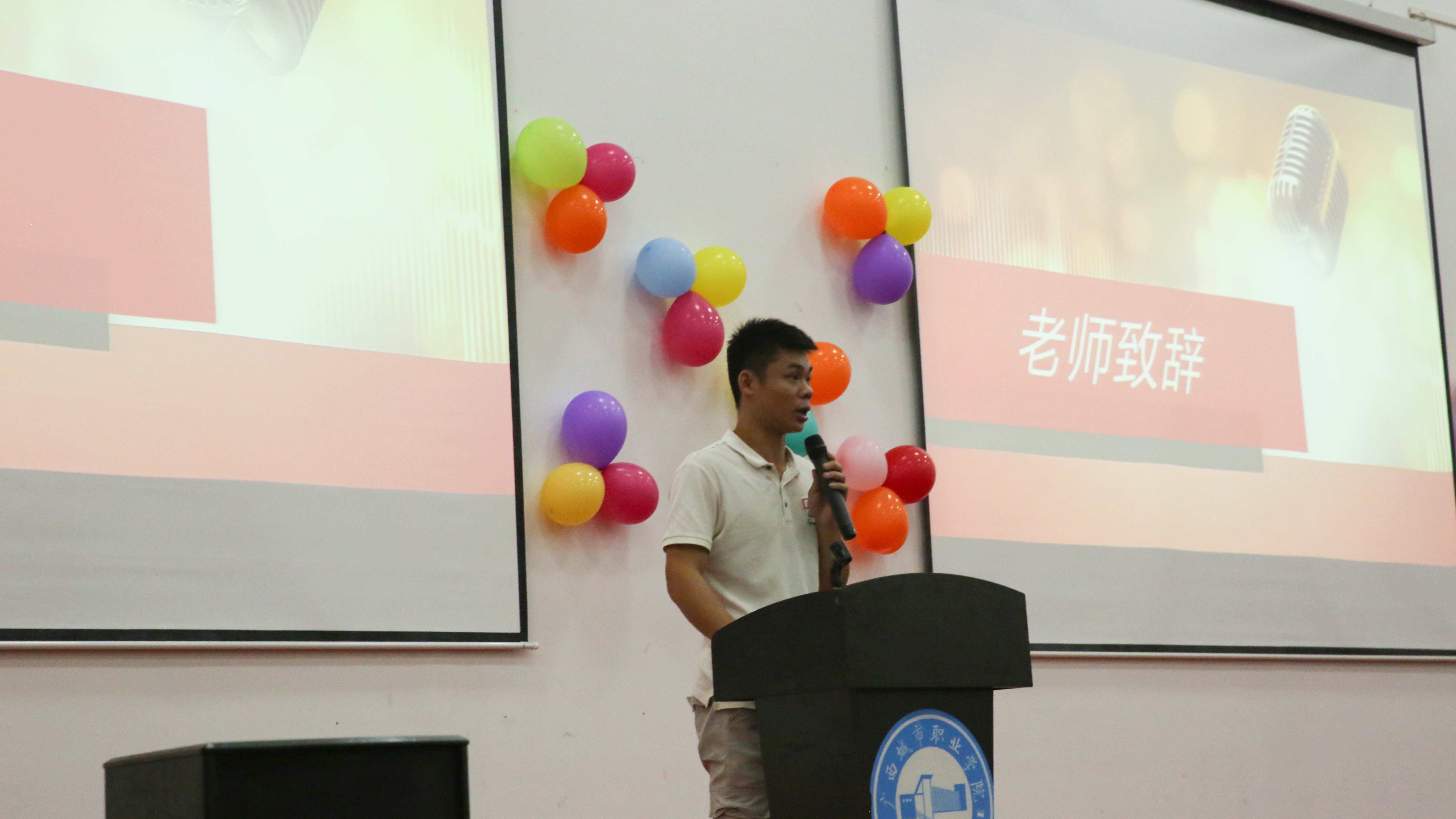 配音大赛开始前,农国艺老师为本次比赛致辞。他表示,“家事,国事,天下事,事事关心”;感谢广播站能每天为我们提供身边的、社会的新闻,为我们提供了最为快捷、最为直接了解新闻的渠道。希望各位选手展现自己的风采,发挥自己独特的配音技巧赛出风格,并预祝本次配音大赛取得圆满成功。