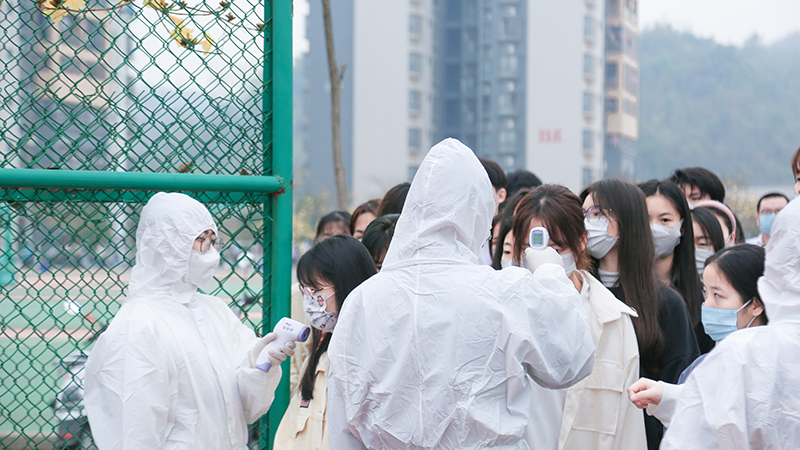 我校严格落实疫情防控要求,提前制定全员核酸检测工作实施方案,全面做好场地布置、人员分工、错峰检测等各项工作。在核酸检测现场,全体师生在志愿者和学工处老师的引导下分批次进入采样区,依次排队等待采样。医务人员严格按照防疫规范身着防护服、戴口罩、护目镜和医用手套,志愿者在检测现场,协助工作人员扫码测温,进行信息登记,检测过程规范、高效,整个采样工作井然有序地进行。