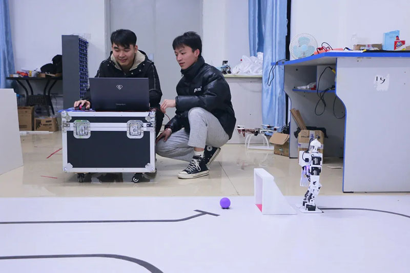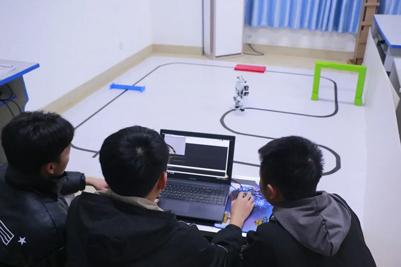 其中,参加第一赛道“IA视觉人形机器人大赛”的秦禄其、韦淋芳、钟永维三位同学在甘新泉、孙振保老师的指导下,不断的对参赛作品进行修改,反复试验,一次次的失败并没有使他们放弃,而是在挫折中不断前进。